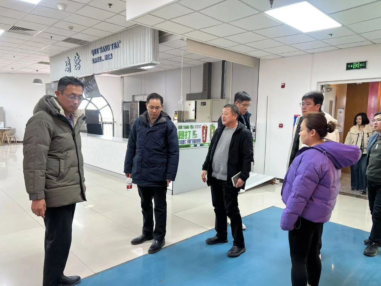 会后,张俊华副校长带领后勤处工作人员到学生食堂等实地查看开学准备情况。